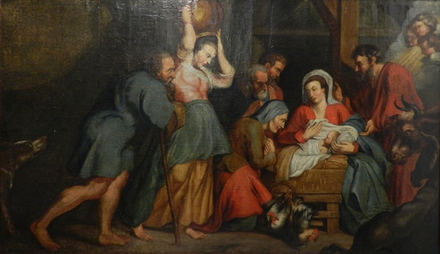 Pieter Paul Rubens schilderde diverse kerststalschilderijen, die internationaal de titel kregen "Adoration of the shepherds" en nu te zien zijn in het Musée des Beaux-Arts in Rouen en in de National Gallery of Scotland. In de 19e eeuw werden dit soort schilderijen van Rubens veelvuldig nageschilderd, zoals dit schilderij rond 1870. Op deze naschildering zijn de lichtinval, de posities van Maria en het kind Jezus, de herders, de knielende vrouw, de os en de ezel, en de houten constructie herkenbaar en goed nageschilderd. De gezichten zijn wat grover geschilderd.
